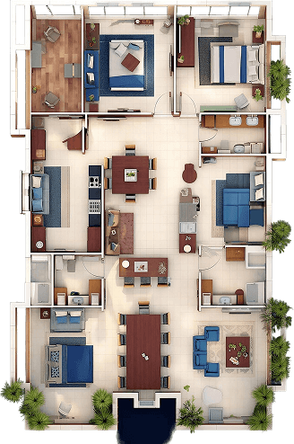The kitchen is the soul of the home—a place where meals are prepared, stories are shared, and aromas fill the air. It often includes countertops, cabinetry, a stove or oven, and space for both cooking and connection.